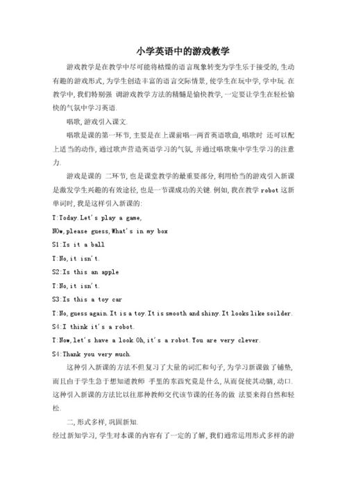 在这个案例中,我们的小学英语老师张老师发现,传统的英语教学模式让孩子们感到枯燥乏味,学习效果并不理想。于是,她决定尝试一种全新的教学方法——游戏教学。她希望通过游戏,激发孩子们学习英语的兴趣,提高他们的英语水平。