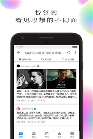 知乎安卓版是一款分享知识和见解的个性化社交平台,功能强大,随时随地发现热门讨论热门推荐的主题从健身、职场到游戏竞技。每天围绕上万话题展开精彩讨论,超过千万用户在知乎分享彼此的知识、经验和见解。还可以关注志同道合的回答者让首页动态随着关注者的增加愈加精彩。